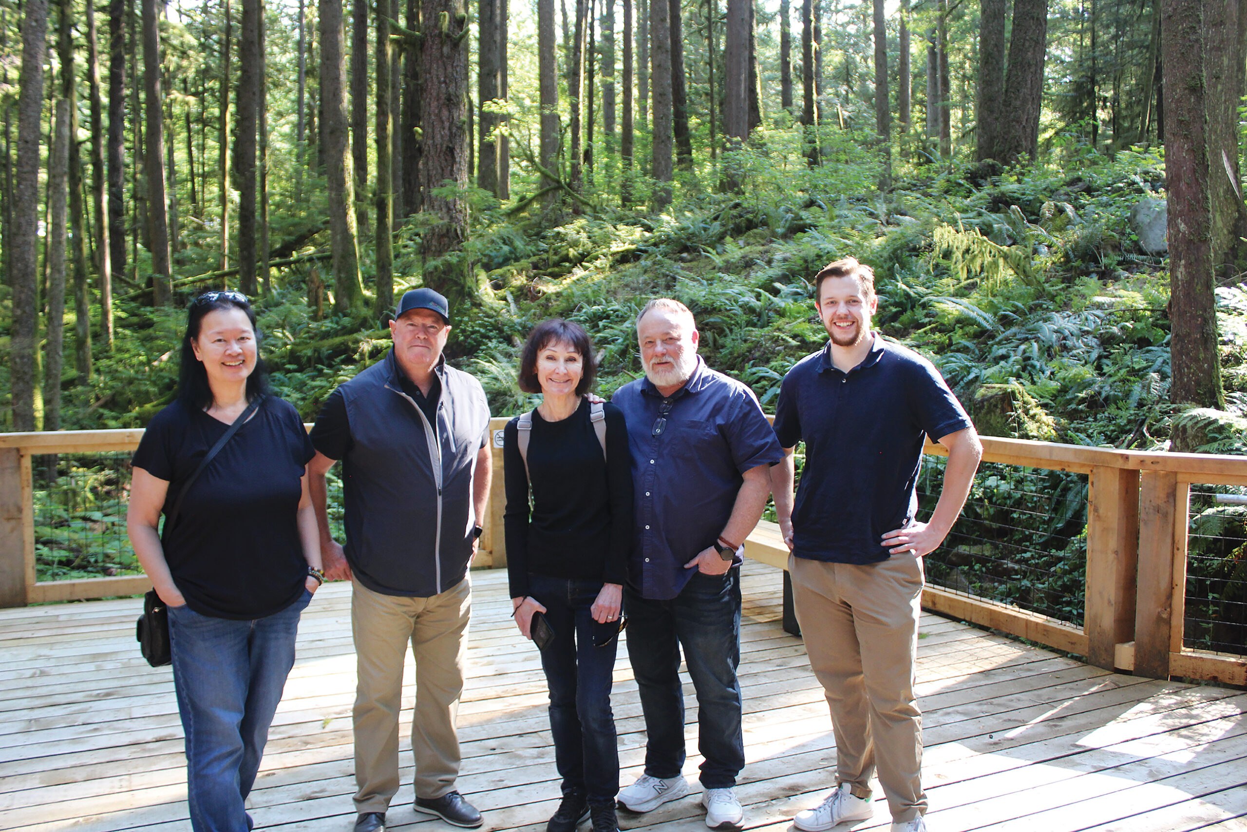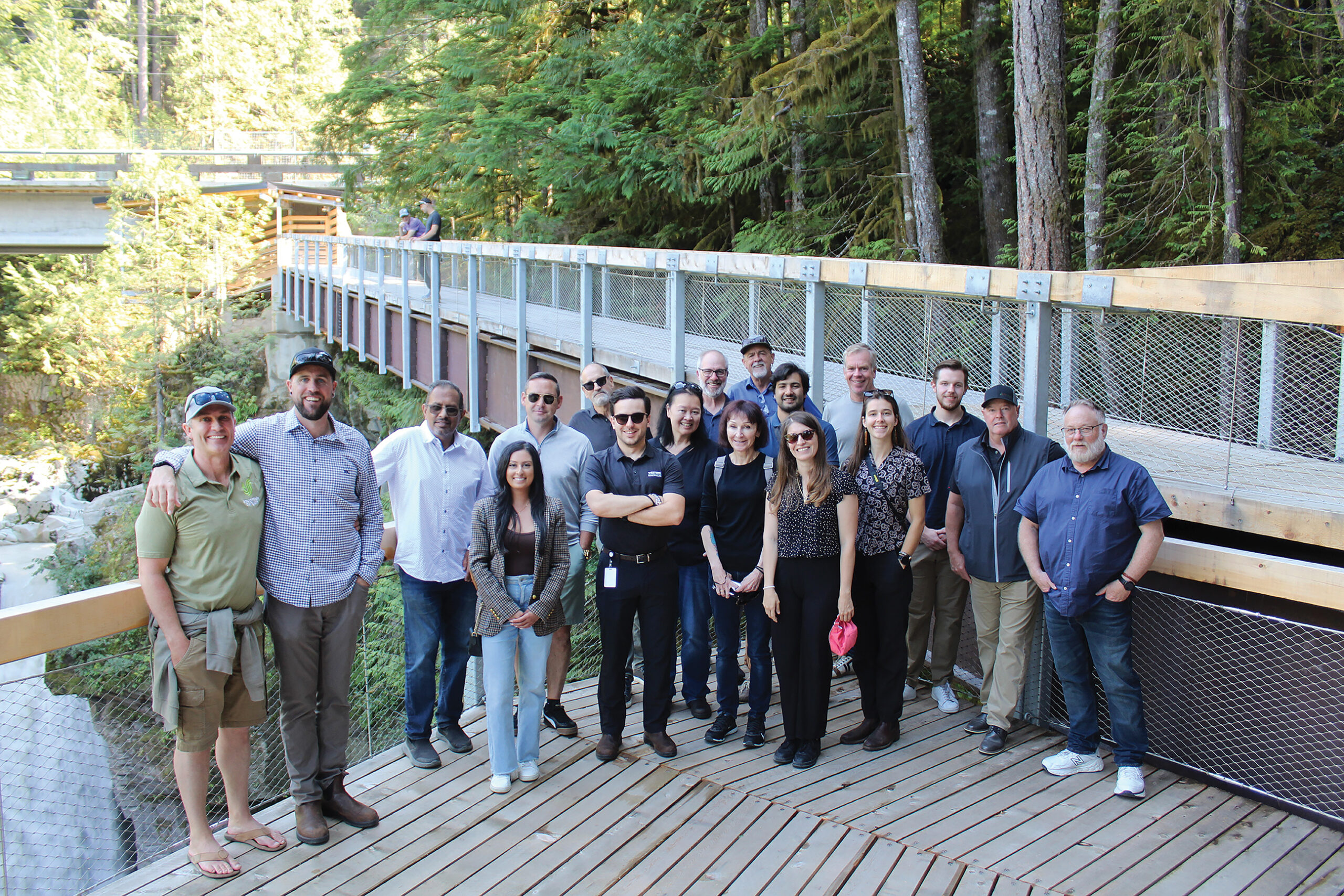 Squamish, BC—located halfway between Vancouver and Whistler—is home to Squamish Canyon, the site of a recent BPWood-hosted tour showcasing fiber implementation in an impressive project. The Mamquam Canyon, formed 13,000 years ago by the eruption of Mt. Garibaldi, now supports a diverse ecosystem of Fir and Cedar trees, mosses, lichens, ferns, shrubs and wildflowers. Boardwalks and bridges allow visitors to explore this environment, while cantilevered walkways offer breathtaking views. These structures are made from locally sourced fibers, in collaboration with forestry stakeholders and wood product suppliers, including BPWood.